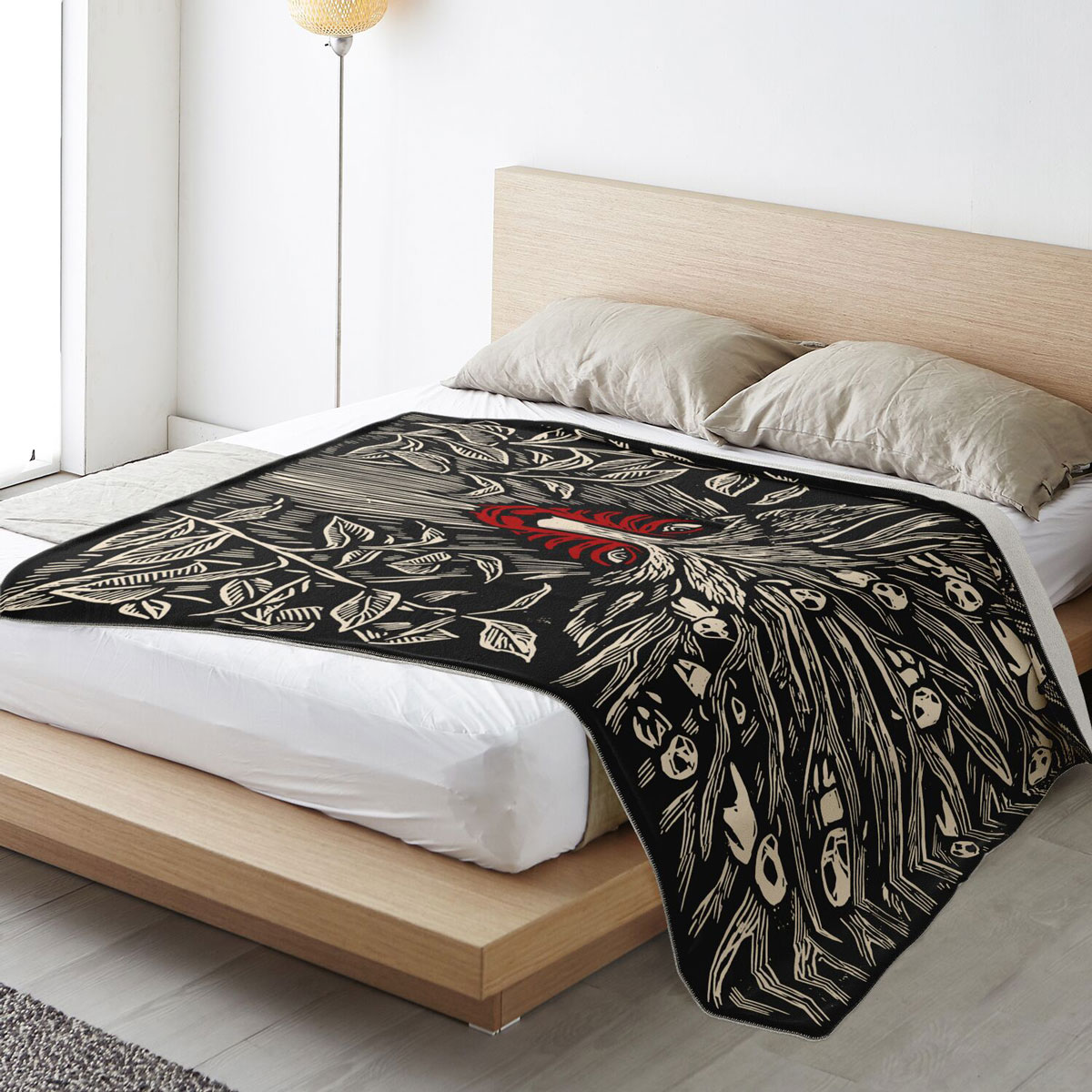 - Theme: Princess Mononoke Forest Spirit Mask Woodcut-Style Sherpa Blanket – Exclusive to Ghibli Nest Store