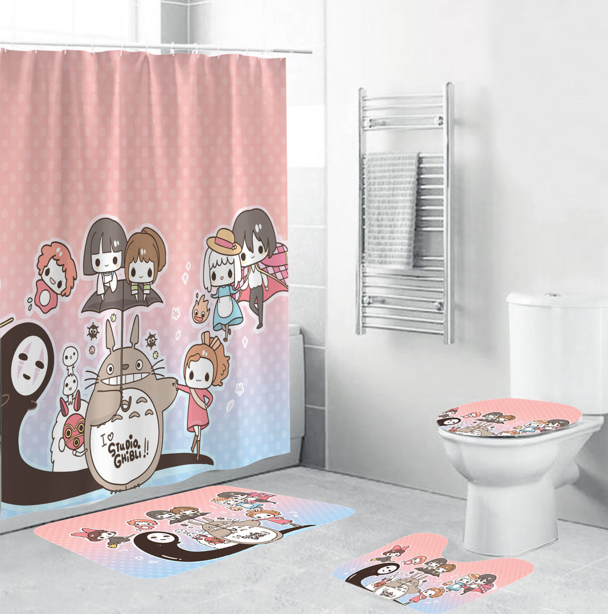 Studio Ghibli Characters Bathroom Shower Curtain Set