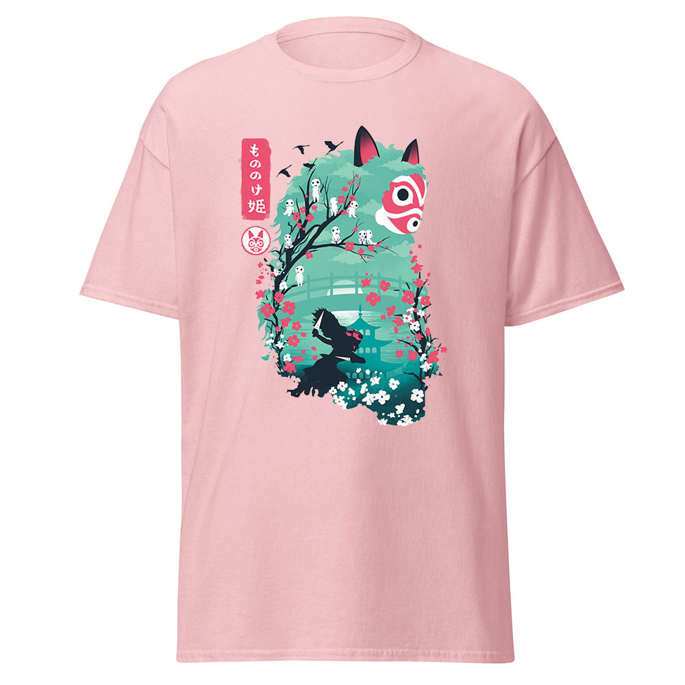 - Design: Forest scene with Mononoke mask, Kodama spirits, and floral details