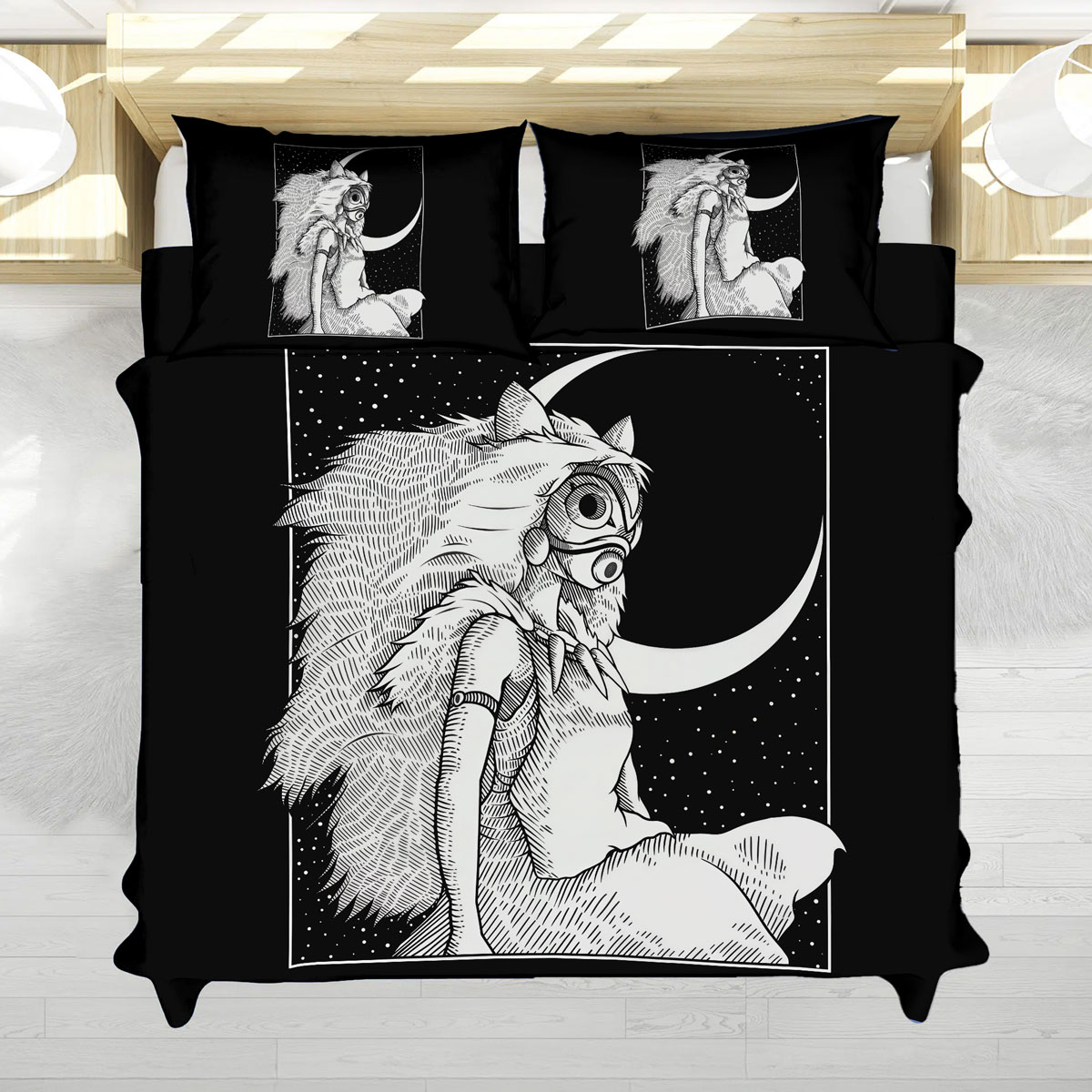 Princess Mononoke Moonlight Line Art Bed Set 1