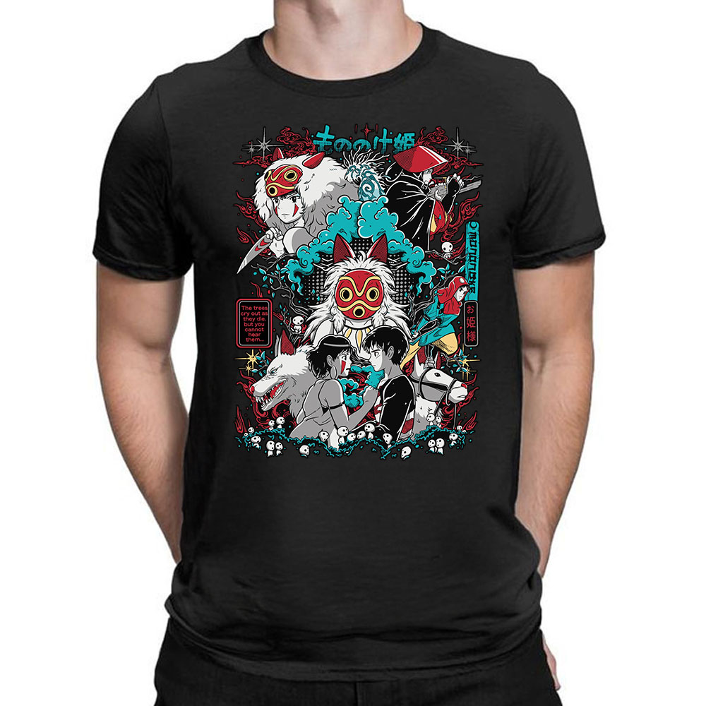 - Design: Multi-character collage featuring Princess Mononoke, wolf spirits, and forest icons