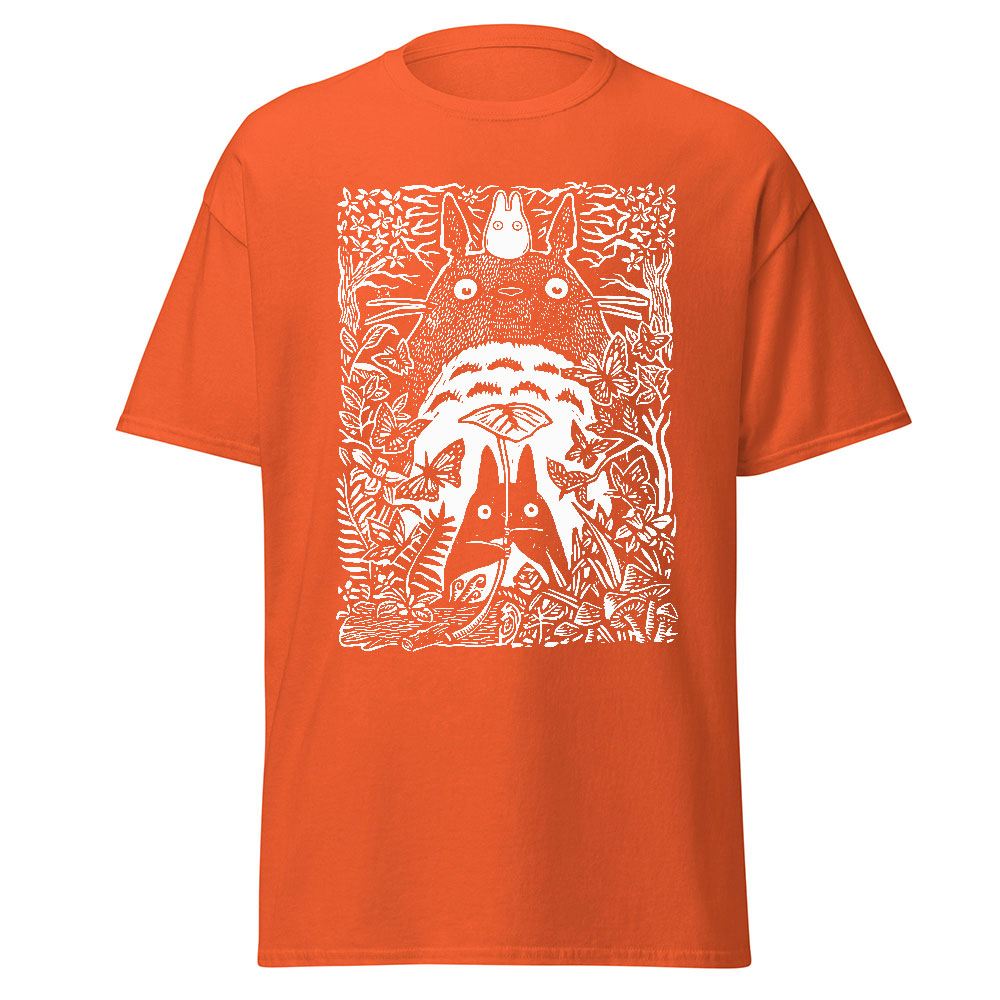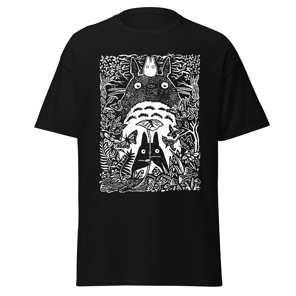 Studio Ghibli Totoro Woodcut Style Black White T Shirt