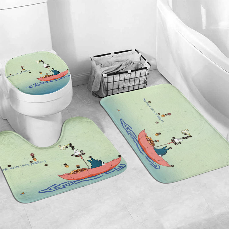 • SET 4PCS:  1 Pedestal Rug, 1 Lid Toilet Cover, 1 Bath Mat and 1 Shower Curtain.