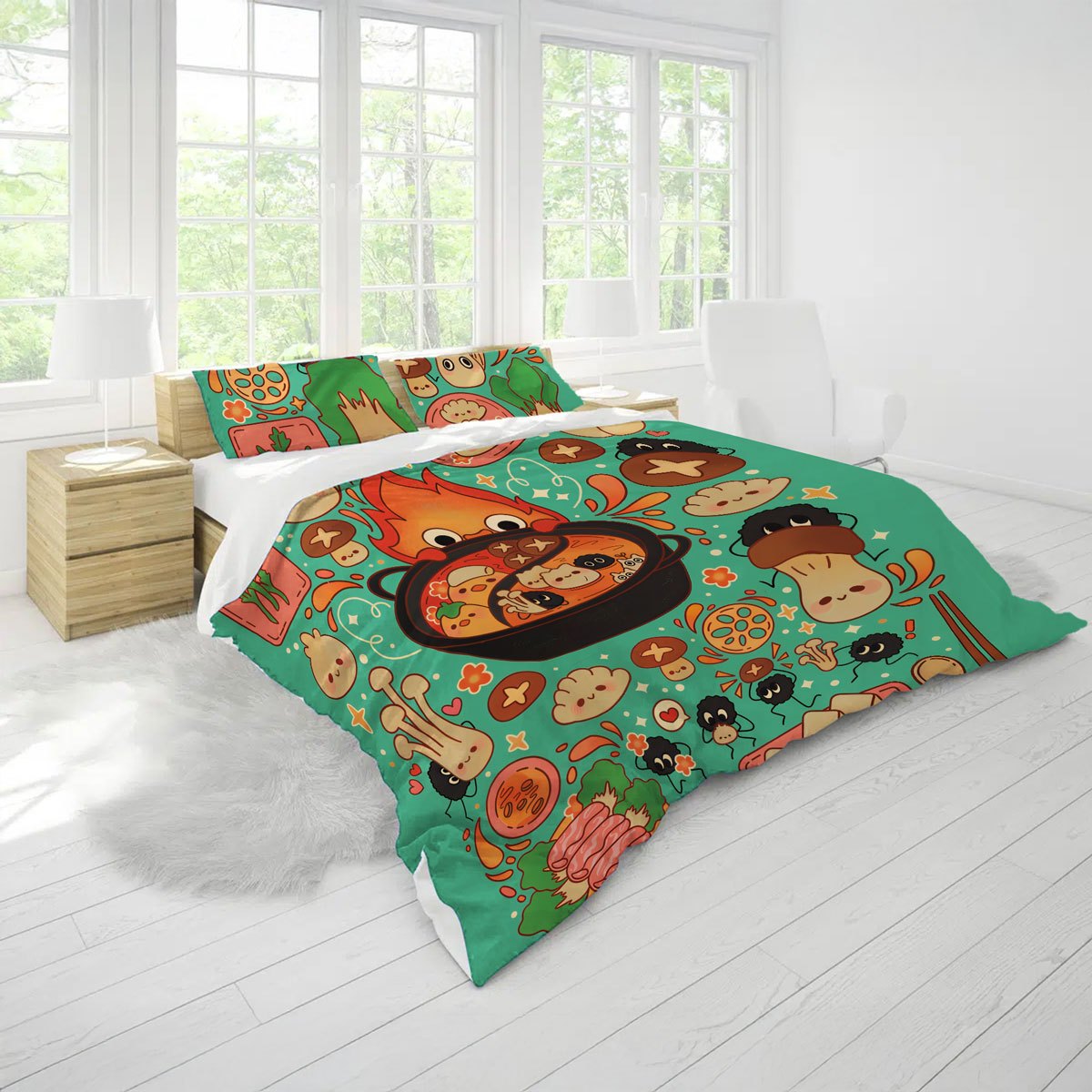 Studio Ghibli Calcifer Hotpot Kawaii Mint Bed Set