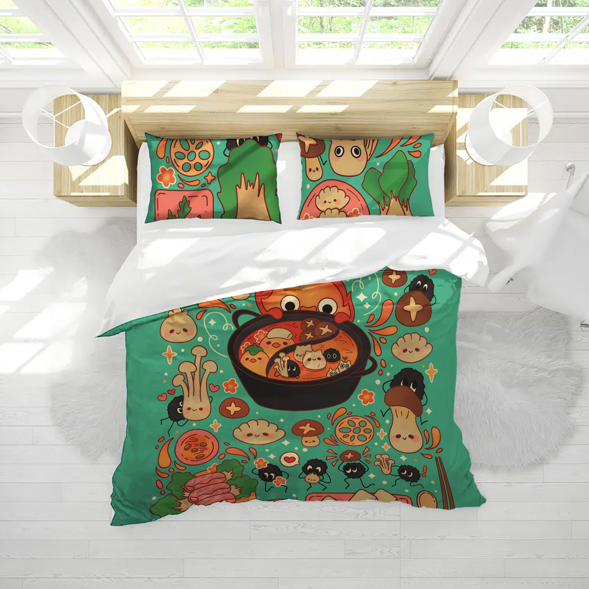 Studio Ghibli Calcifer Hotpot Kawaii Mint Bed Set