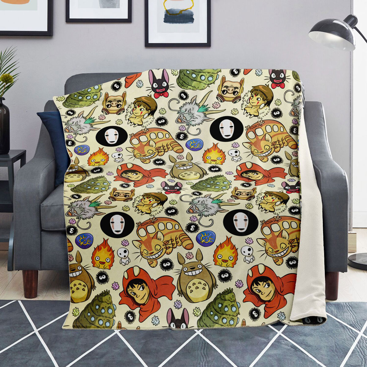 Studio Ghibli Characters Pattern Cozy Sherpa-Style Blanket