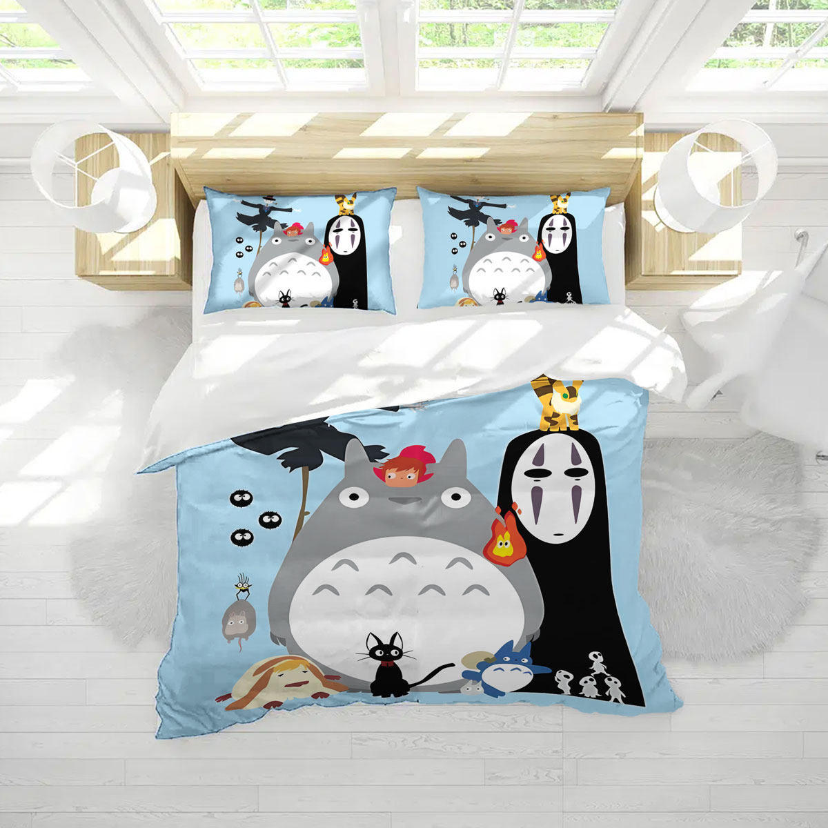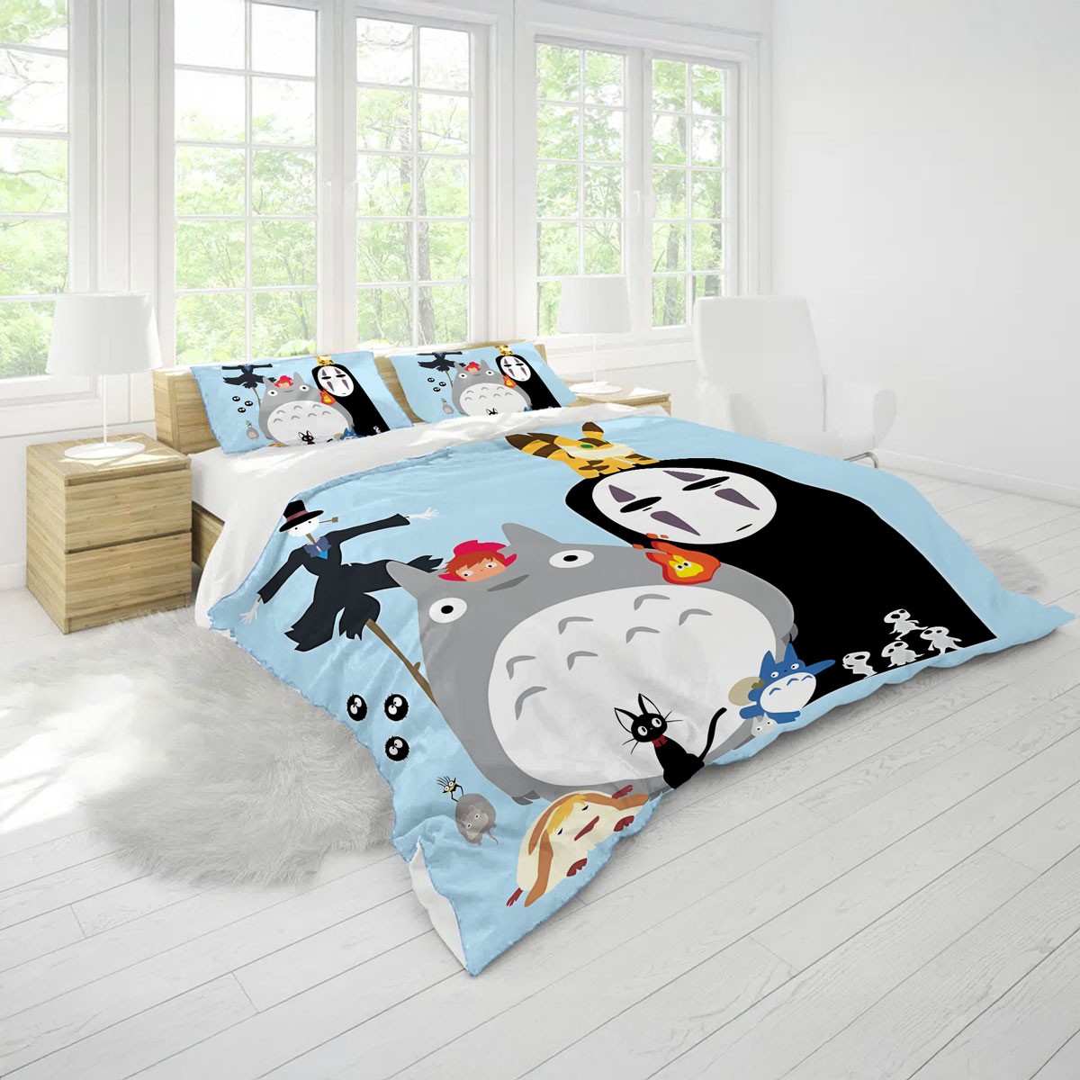 Theme: Studio Ghibli Cute Characters Pastel Blue Bedding Set