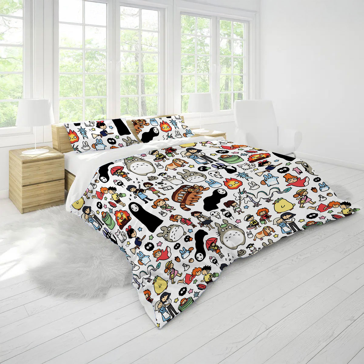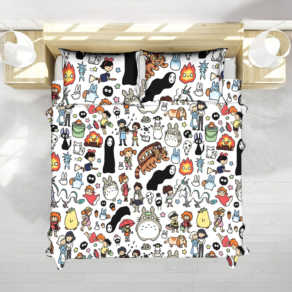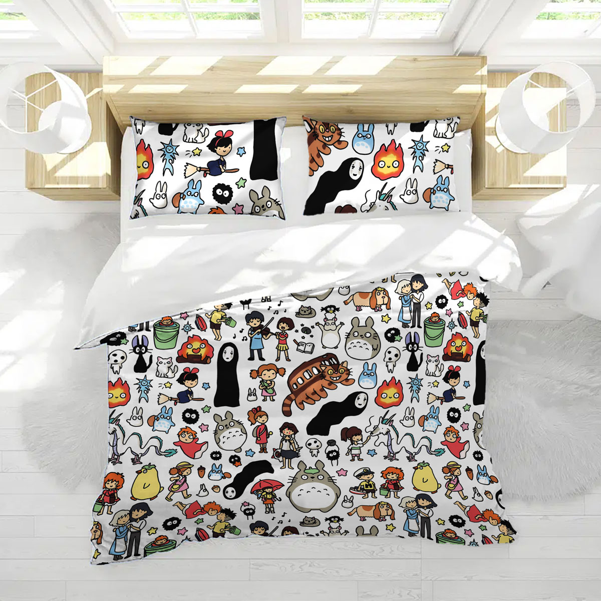 - Theme: Studio Ghibli Doodle Pattern Cute Characters Bed Set