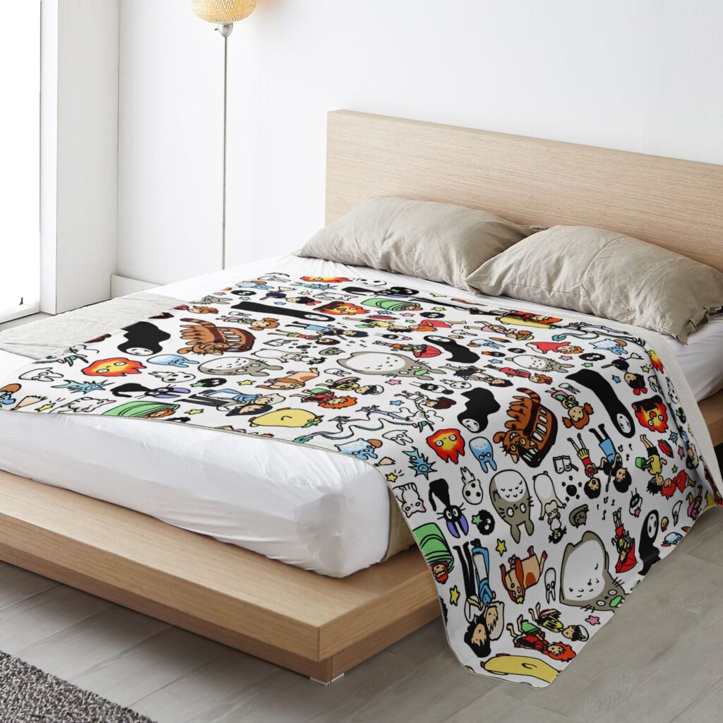 Studio Ghibli Full Chibi Doodle Characters Sherpa-Style Blanket
