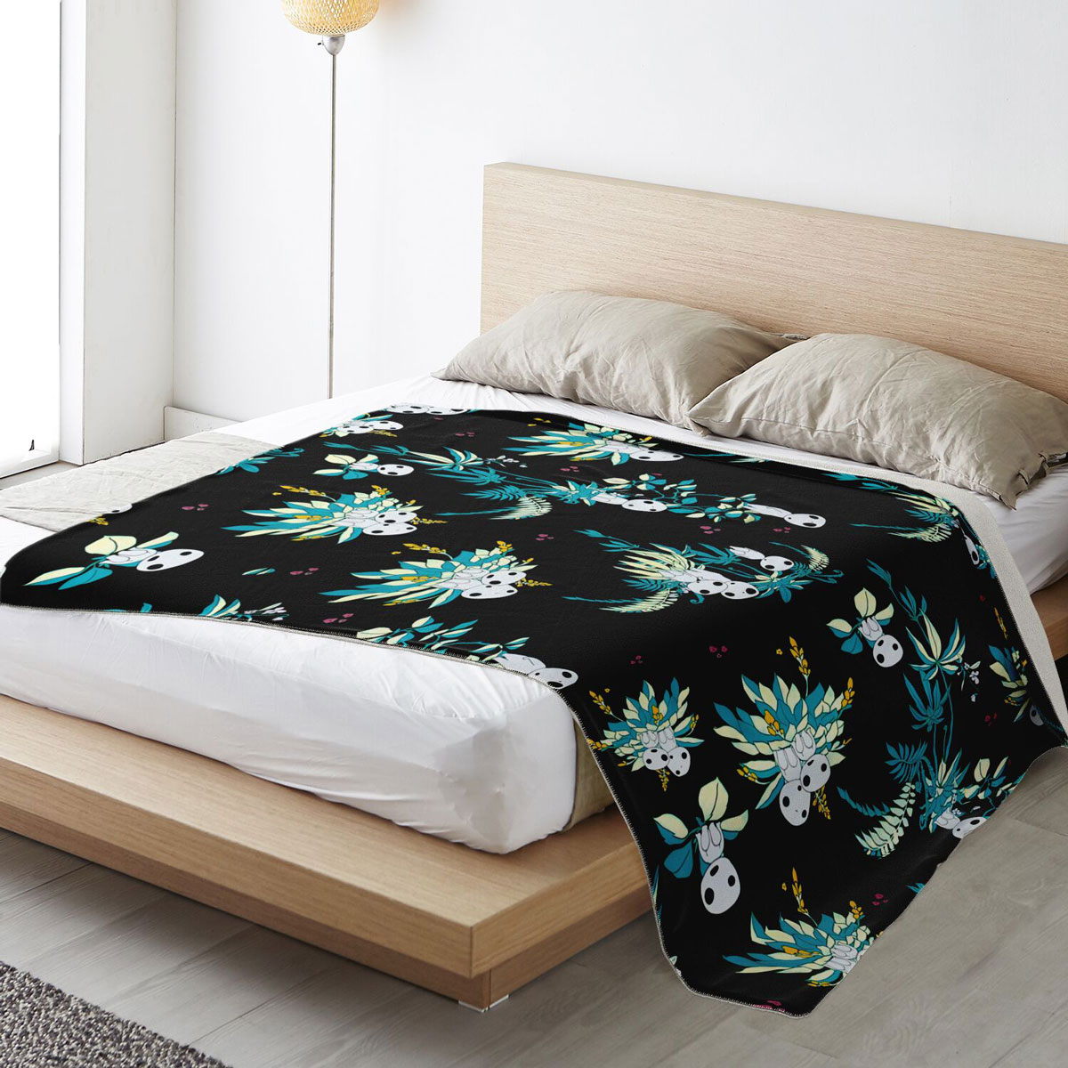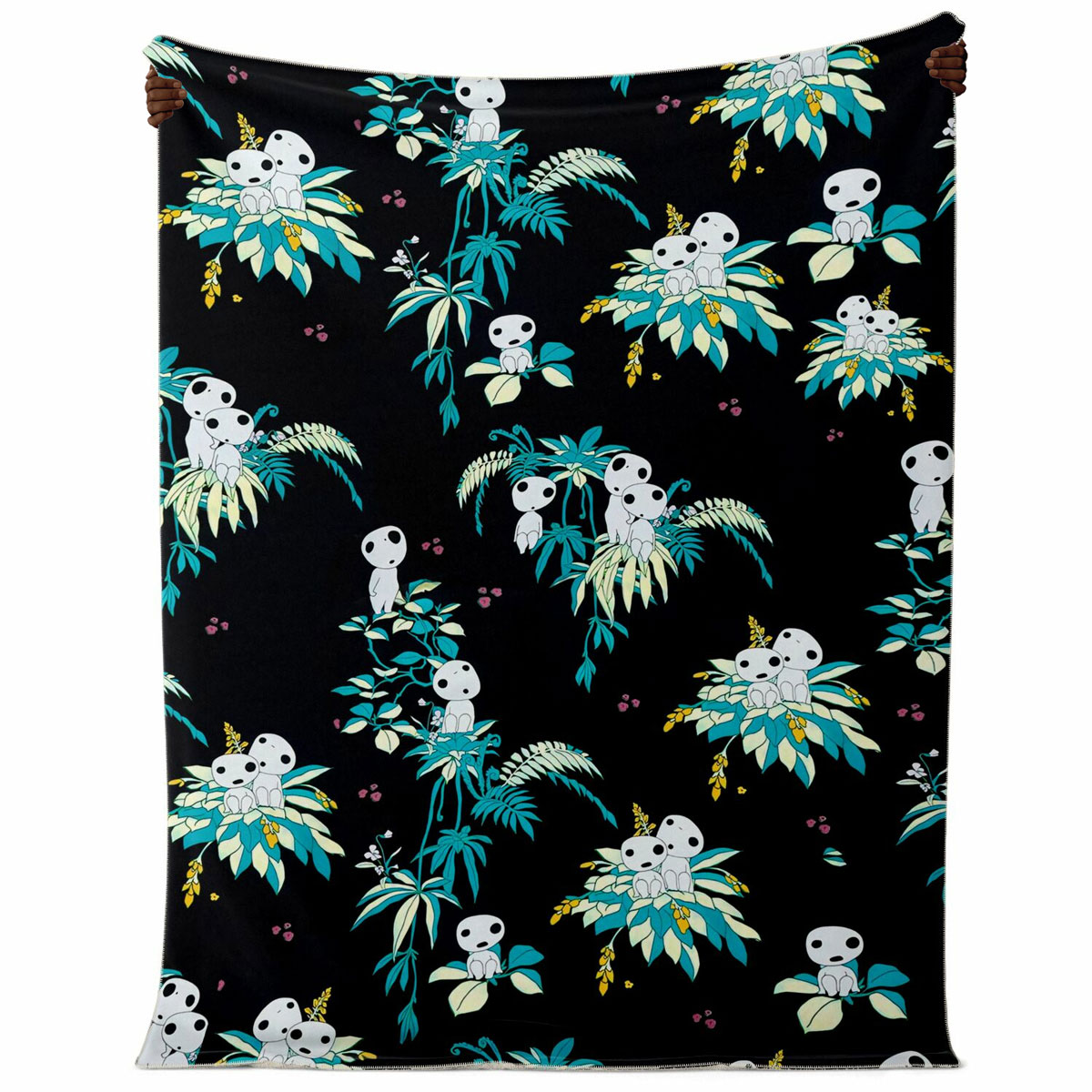 - Theme: Kodama Forest Spirits Botanical Pattern Sherpa Blanket – Exclusive to Ghibli Nest Store
