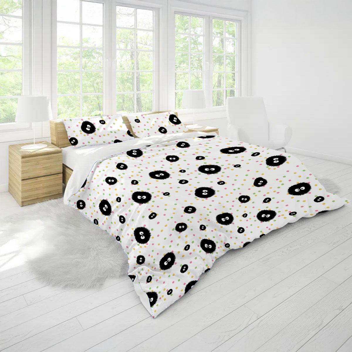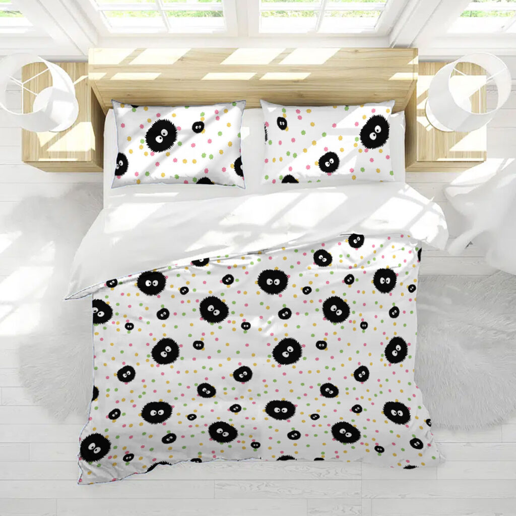 - Theme: Studio Ghibli Soot Sprites Minimal White Pattern Bed Set