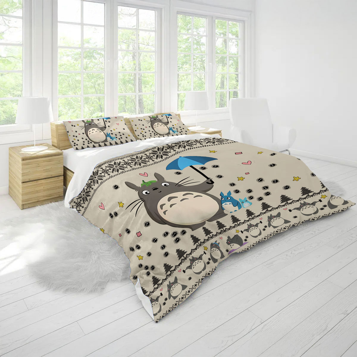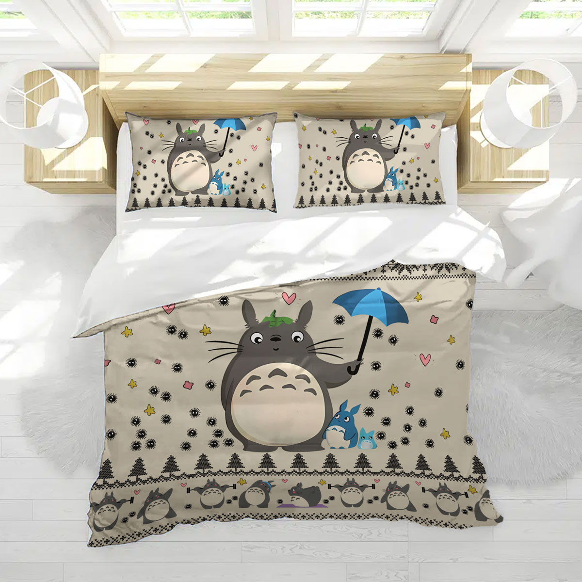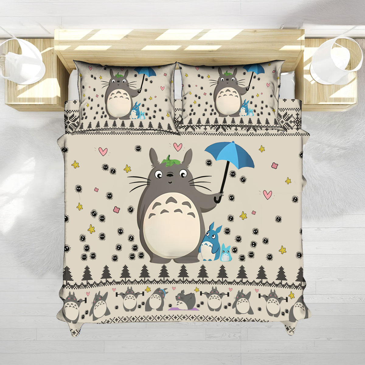 - Theme: Studio Ghibli Totoro Umbrella Beige Cute Pattern Bed Set